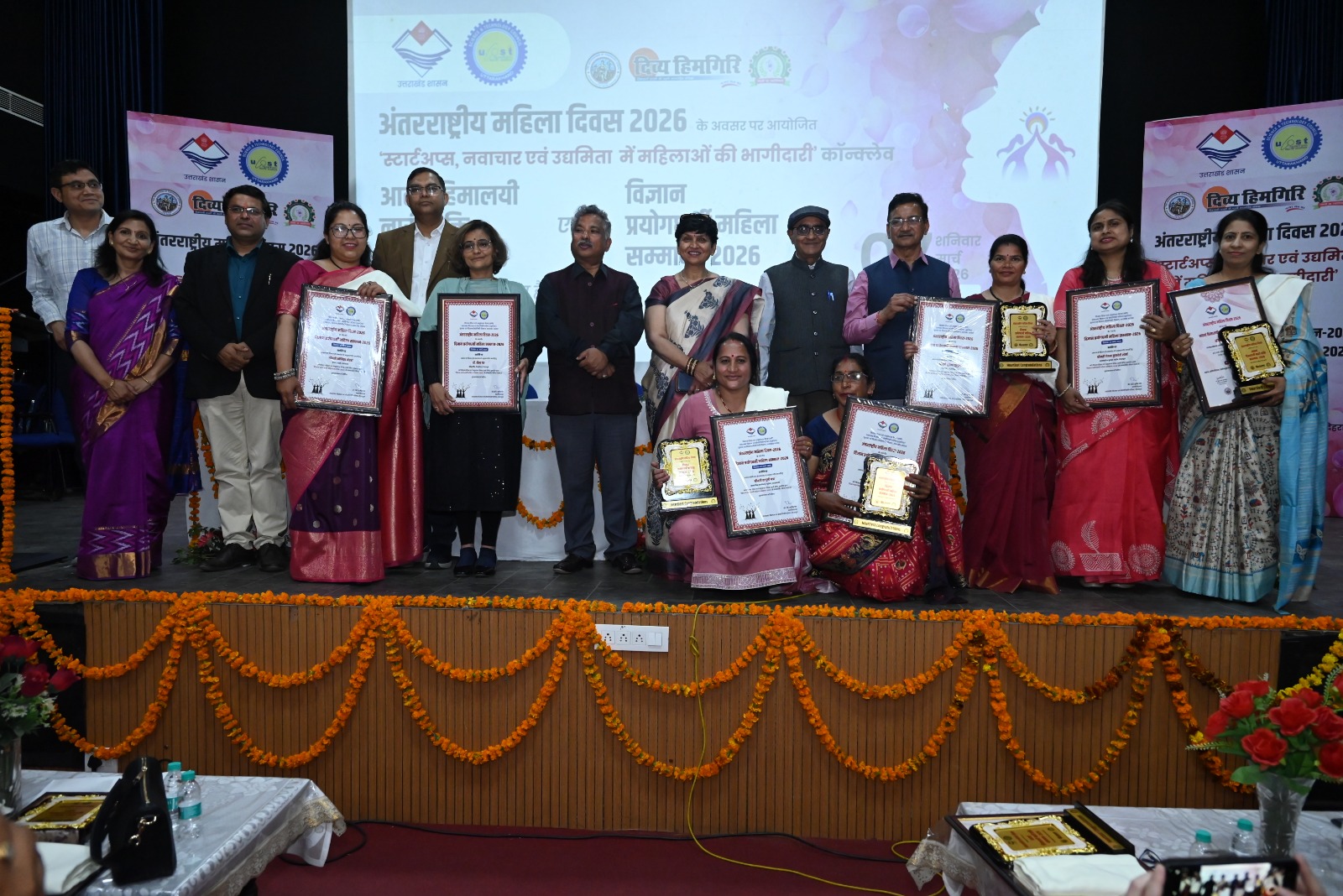 देहरादून। यूकॉस्ट ने अंतर्राष्ट्रीय महिला दिवस के अवसर पर इंस्टीट्यूशन ऑफ इंजीनियर्स (इंडिया) सभागार में पांचवें विज्ञान प्रयोगधर्मी महिला सम्मान से 07 महिलाओं को एवं आठवें हिमालयी नारी शक्ति सम्मान से 20 महिलाओं को सम्मानित किया। इस अवसर पर “स्टार्टअप्स, नवाचार एवं उद्यमिता में महिलाओं की भागीदारी“ विषयक कॉनक्लेव भी आयोजित किया गया।