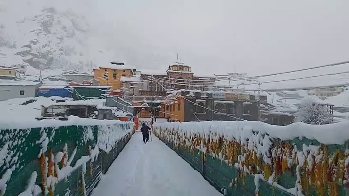 चमोली। जनपद में देर शाम से ही मौसम ने करवट ले ली है। जिले के विभिन्न क्षेत्रों में लगातार बारिश का सिलसिला जारी है, जबकि उच्च हिमालयी क्षेत्रों में ताजा हिमपात हो रहा है। बदरीनाथ धाम सहित हेमकुंड साहिब में लगातार बर्फबारी से पूरा क्षेत्र बर्फ की सफेद चादर से ढक गया है। बदरीनाथ में एक बार फिर ताजा बर्फ पड़ने से धाम बर्फ की आगोश में नजर आ रहा है। ऐसा प्रतीत हो रहा है मानो प्रकृति ने भगवान बदरी नारायण के धाम को सजाने में कोई कमी न छोड़ी हो। मार्च माह के अंतिम दिनों में भी यहां की पहाड़ियां चांदी की तरह चमकती दिखाई दे रही हैं।